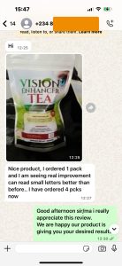 I was struggling to read messages on my phone. But after just a few weeks of drinking Vision Enhancer Tea, I can now read small print again without any issues!